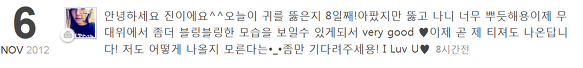 Hello, this is Zin.^^ It's been 8 days today since I pierced my ear! It was hurting though, I'm so satisfied. It's very good since I'm able to show more bling-bling looks on stage♥ Soon my version of teaser comes out! I don't even know what it would be like*_* please wait for that! I Luv U♥